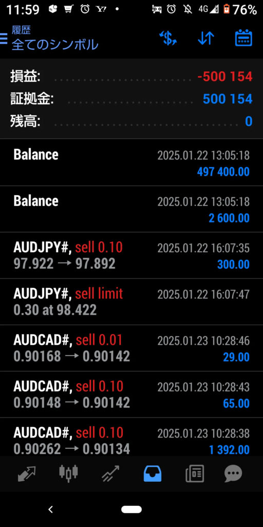 2025年1月27日のトレード結果 マイナス 500154円