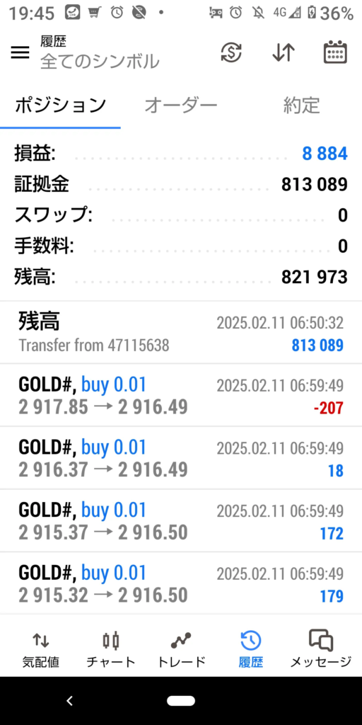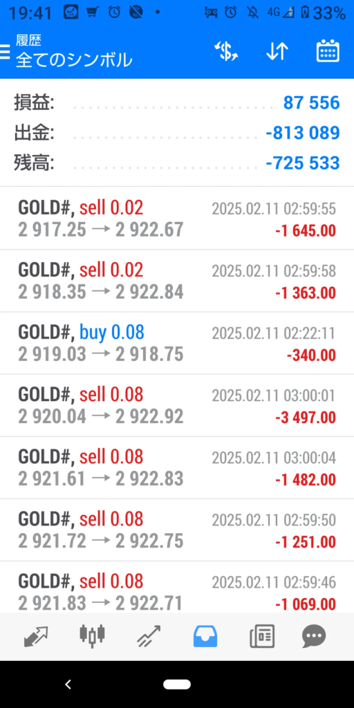 2025年2月11日のトレード結果 プラス 96440円