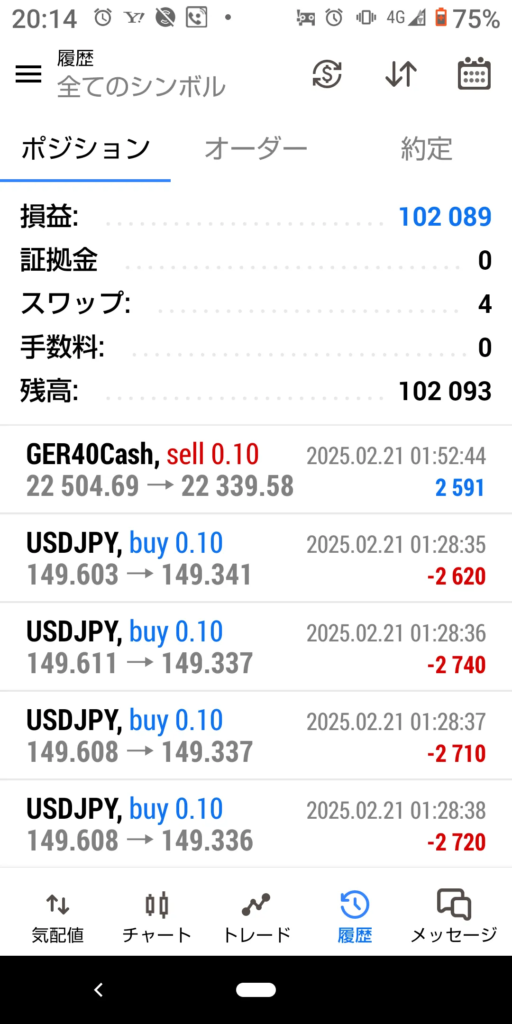 2025年2月2日のトレード結果 プラス 102089円