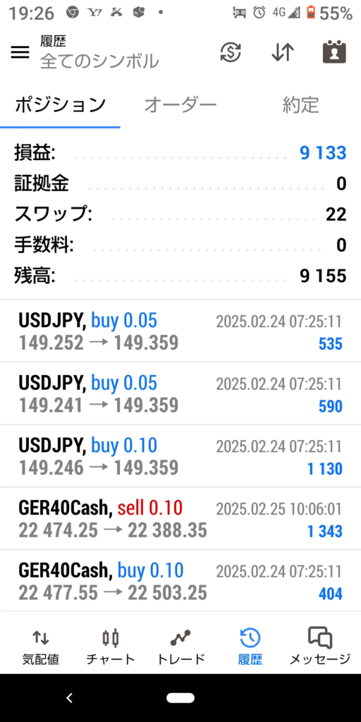 2025年2月24日のトレード結果 プラス 9133円